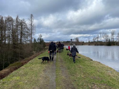Das Wetter war nicht ganz wie erhofft, aber für eine Wanderung noch okay - zumindest hat es auf der Strecke nicht geregnet. Die Hundeführer waren motiviert, da am Ende der Strecke die Einkehr in einer Gaststätte lockte. Die Hunde waren mega brav und zeigten sich abermals von ihrer besten Seite. Die Strecke war mit knapp 7 km für alle Konditionslevel gut geeignet. Wir hatten während und auch nach der Wanderung viel Spaß, gute Gespräche und am Ende ein leckeres Essen.